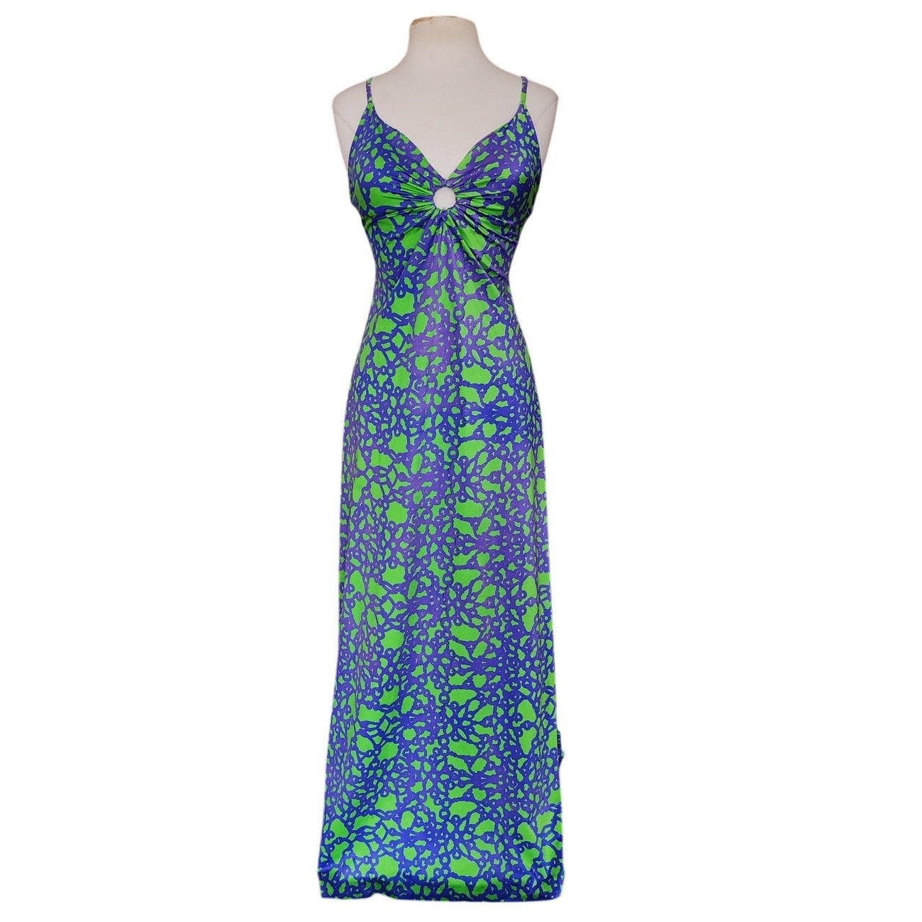 Vintage 1980s Blue Dress Embroidered w/Black Spiral Coils Avant Garde Art Clothes