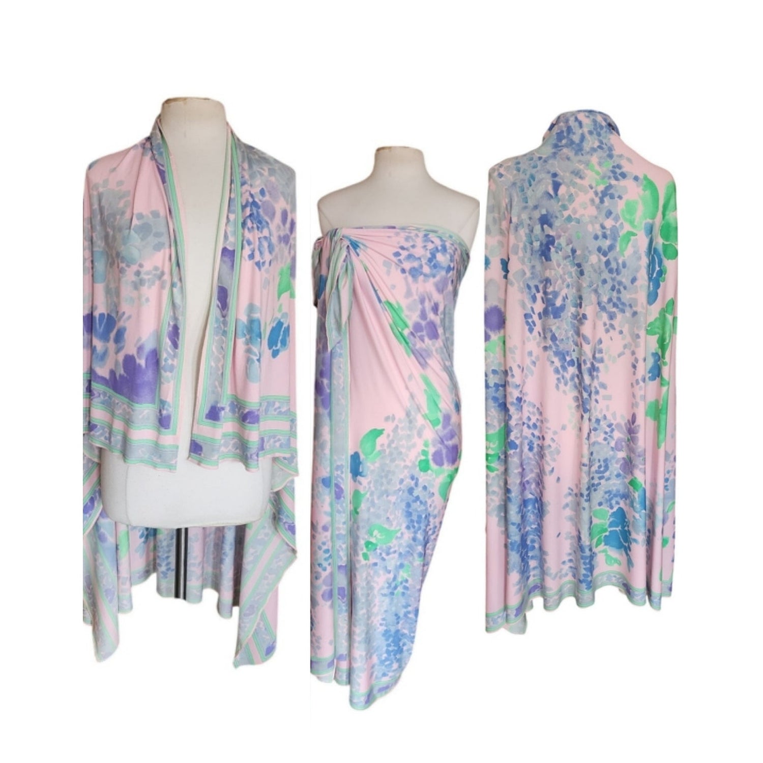 Emilio Pucci Dress Short Sleeved Silkprint Yellow Gray NWT