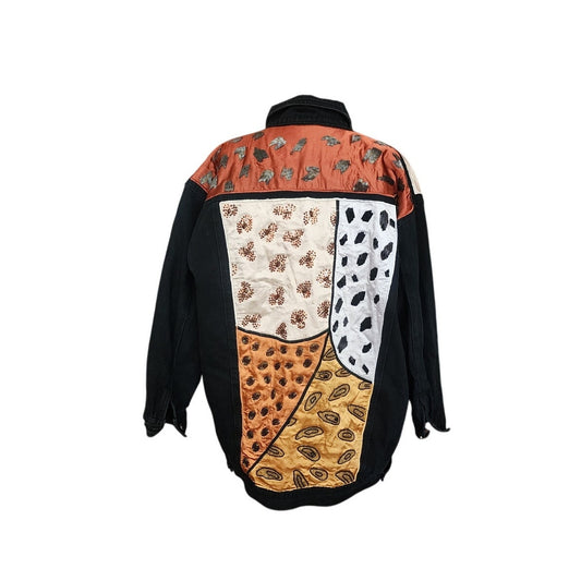 Vintage 80s Black Denim Jean Jacket Patchwork Sequins, Beading, Embroidery Plus Size 2X