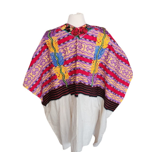 Vintage Huipli Guatemalan Mayan Tunic Hand Embroidered Multicolored Figural Floral Pattern