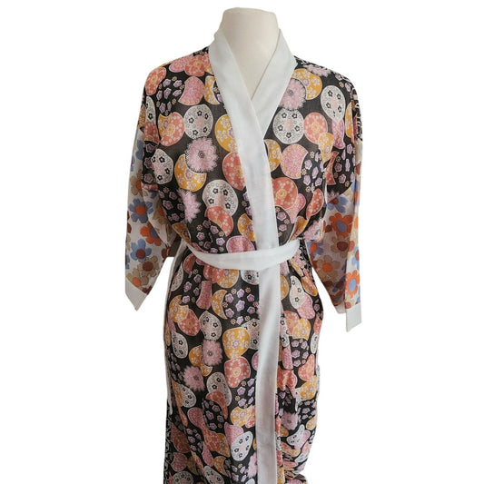 Vintage Marshall Field & Co. Floral Print Kimono Robe Mosaic Print Multicolored