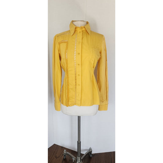 Vintage Yellow Shirt Button Down by Philosophy Alberta Ferretti w/ Crochet Trim Small