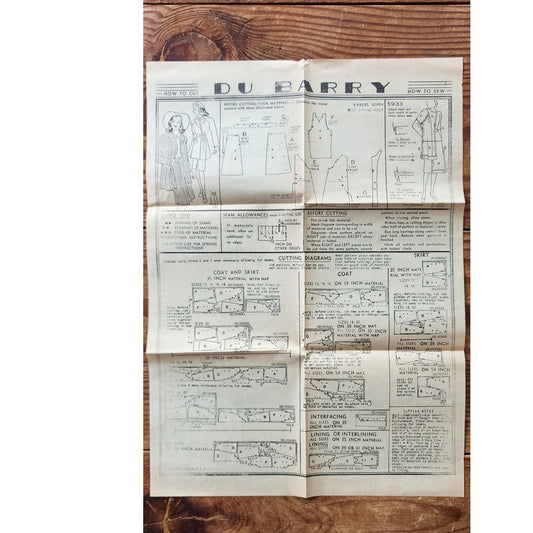 Vintage 40s ORIGINAL Sewing Pattern Coat & Skirt Du Barry 5933 Size 38