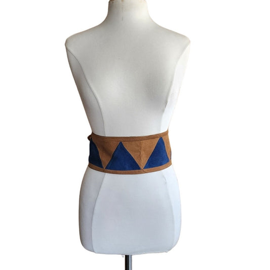 80s Colorful Wide Belt Geometric Suede Panels Sash Tie Catherine Regehr