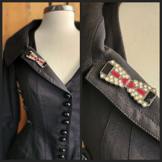 Vintage 30s Brooch Art Deco Bow Tie Pin Enamel & Rhinestone