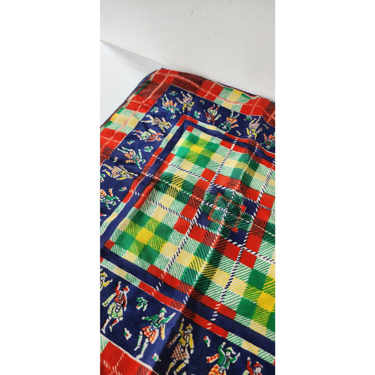Vintage 40s Souvenir Scarf Scottish Dancers Plaid Pattern Highlander