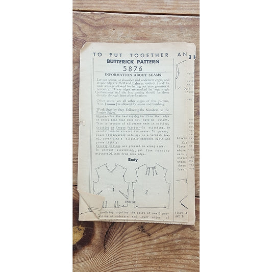 Vintage 1930s ORIGINAL Dress Sewing Pattern: Belted Day Dress Frock Butterick 5876