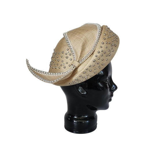 Vintage Jack McConnell Hat Asymmetrical Cream Straw Pearls Studs