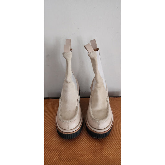 Rag & Bone Ankle Boots Sloane Chelsea Cream Leather Suede Wedge Booties 8