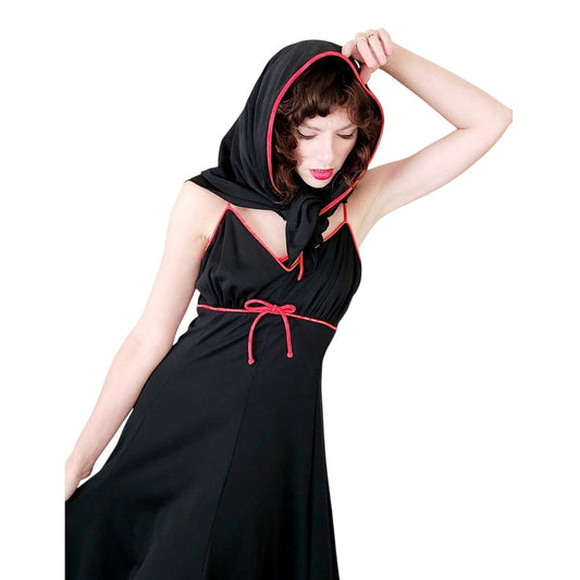 Vintage 70s Maxi Dress Black Orange + Matching Scarf