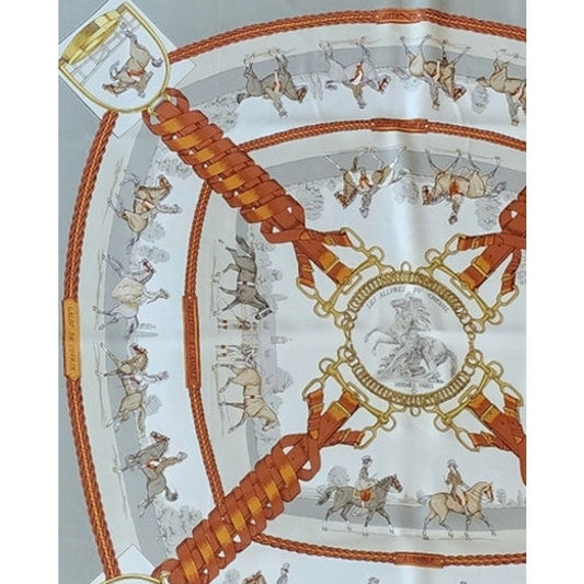 Hermes Silk Scarf "Les Allures de Cheval" by Ledoux Equestrian Horse Print Gray