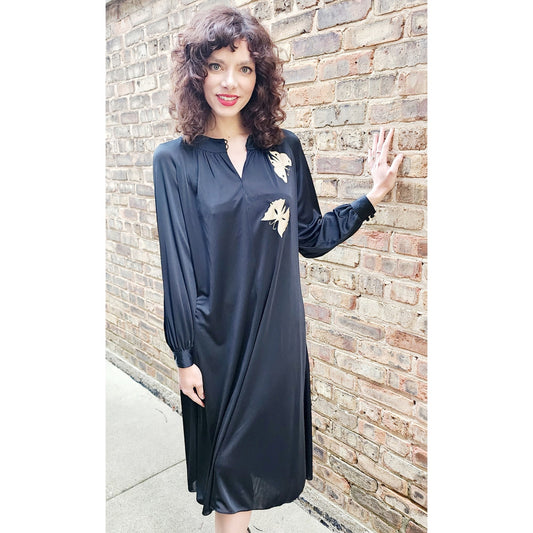 Vintage 70s Black Dress Butterfly Embroidery Ciao Ltd