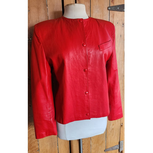 Vintage 80s Red Leather Jacket Snap Front Closure / S