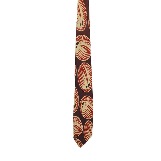 Vintage 40s Mens Tie Brown Red Abstract Coconut Fruit MCM Print Bond Style Manor