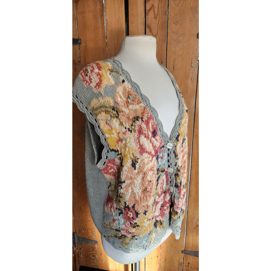 Vintage 90s Ladies Sweater Vest Floral Print Cottagecore Cambridge Country Store / XL