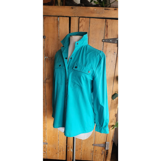 Vintage 70s Diane Von Furstenberg Shirt Blue Green Snap Front