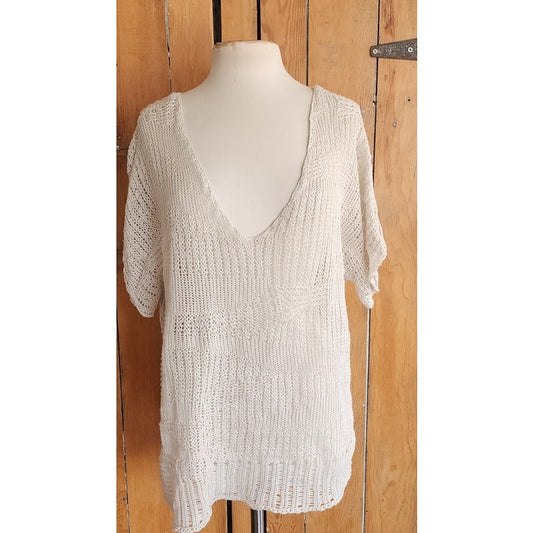 Eileen Fisher V Neck Knit Top Dolman Sleeves Bone XL NWT