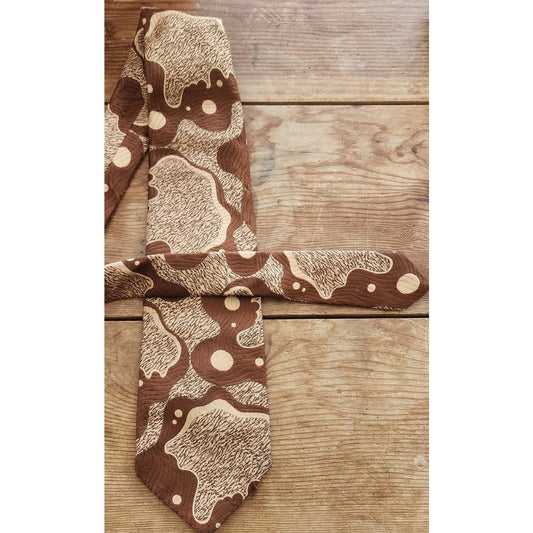 Vintage 60s Mens Necktie Psychedelic Brown Beige Print Abstract Plasma