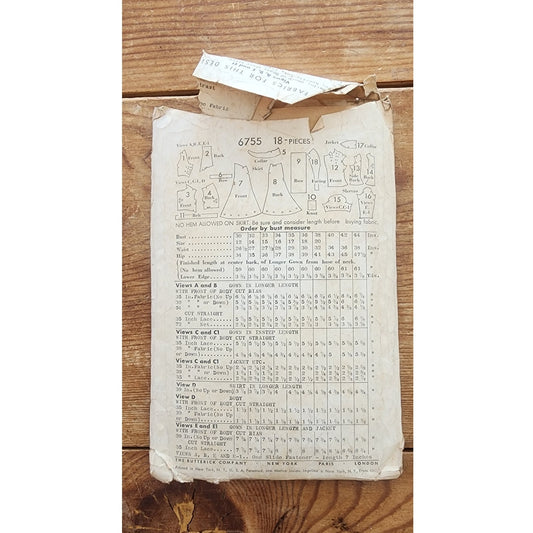 Vintage 30s Sewing Pattern ORIGINAL: Evening Dinner Gown or Formal or Afternoon Dress Butterick 6755