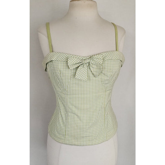 Vintage 2000s Bustier Top Green Gingham Print Nanette Lepore / M