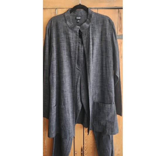 Vintage Eileen Fisher Jacket Pants Set Linen Blend Gray Large