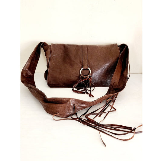 Vintage 2000s BCBG Brown Leather Shoulder Bag w/Fringe