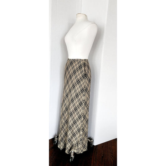 Vintage 90s Calvin Klein Long Plaid Skirt Printed Rayon / S