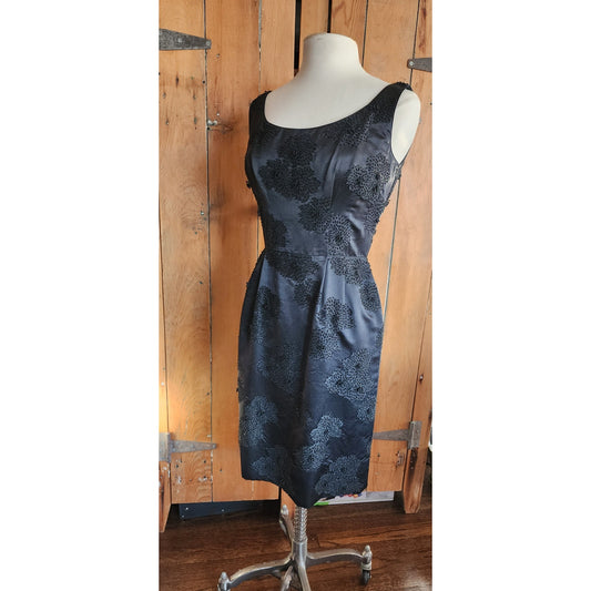 60s Wiggle Dress Black Beaded Silk Hong Kong Embroidery / M