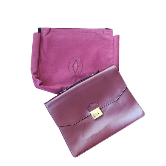 Vintage Cartier Briefcase Satchel Bordeaux Leather Gold Hardware w/Dustbag