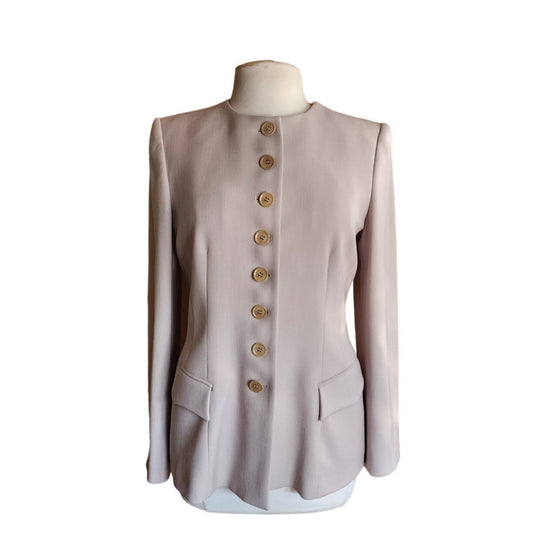 Vintage Armani Black Label Blazer Beige Wool Collarless Jacket Borgo 21