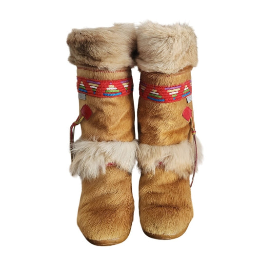 Vintage 70s Tecnica Winter Boots Embroidered Fur / 7.5