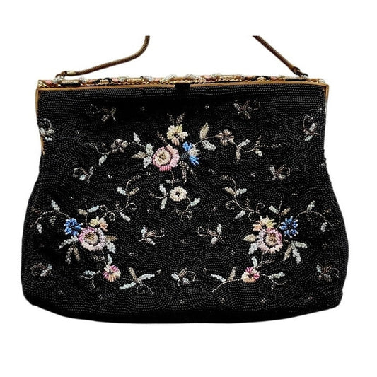 Vintage 50s Evening Bag Black Microbeading France