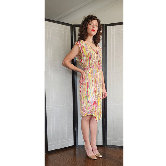 Vintage 2000s Yves Saint Laurent Dress Silk Print Impressionist Painterly Pattern