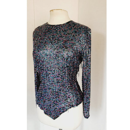Vintage 80s Sequined Tunic Purple Blue Evening Top by Diva