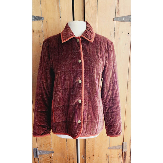 Vintage Y2K Etro Jacket Quilted Velvet Brown Paisley Print