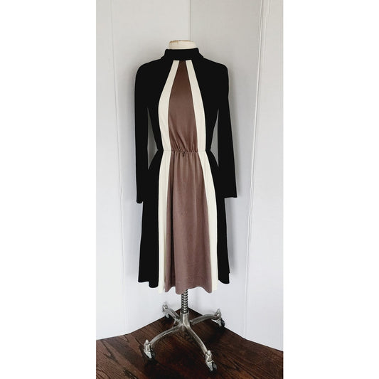 Vintage 70s Bold Stripe Dress Black Brown Cream RK Originals