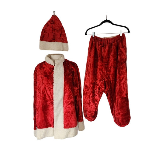 Vintage Santa Claus Costume Jacket Pants Hat Red Velvet