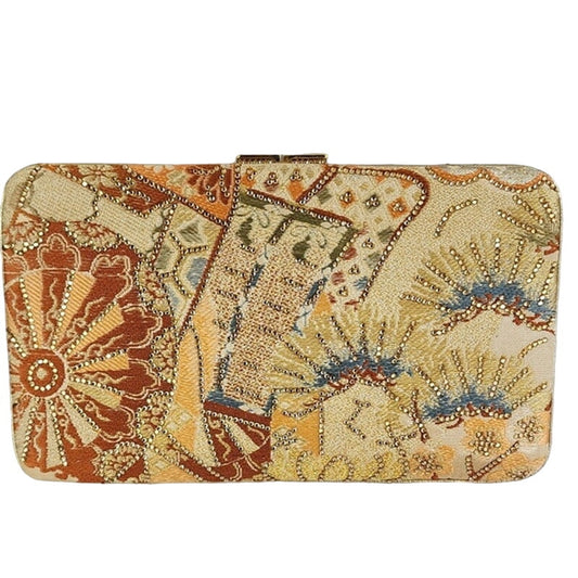 Vintage Judith Leiber Bag Rhinestone Studded Floral Fabric & Gold Leather
