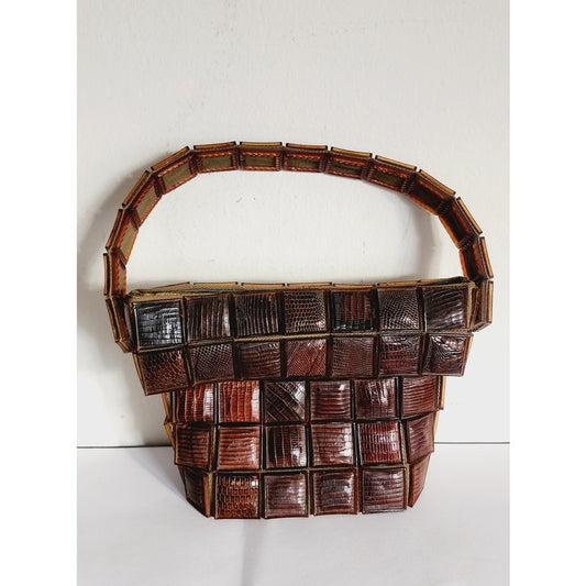 Vintage 1940s Bag in Alligator Tile Basket/Picnic Style