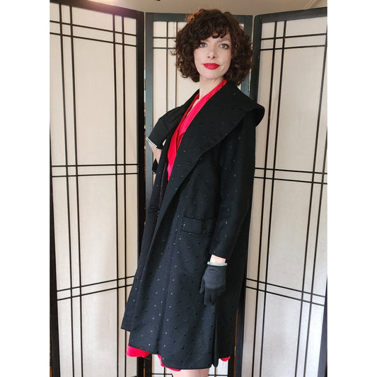 Vintage 50s Swing Coat Black Wool Polkadot Print