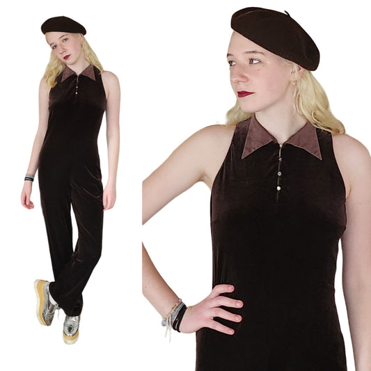 Vintage 90s Velvet Jumpsuit 1Sleeveless, in Brown Kay Unger / S