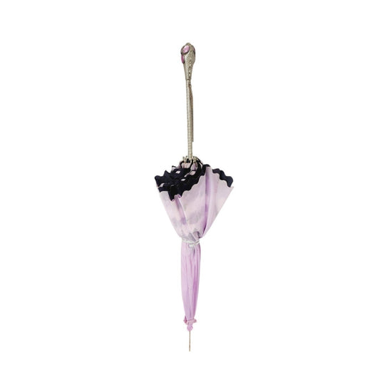 Vintage 60s Umbrella Purple Stone Silver Handle Floral Nylon Print