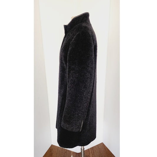 Eileen Fisher Black Coat Alpaca Wool Blend + Leather Trim