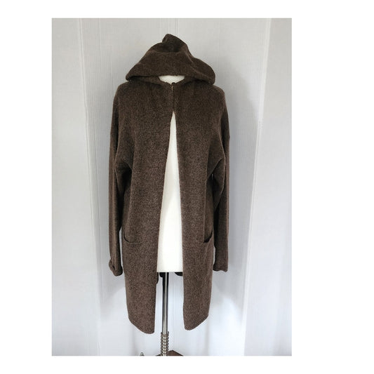 Vintage Eileen Fisher Hooded Cardigan Sweater Jacket Brown Mohair Wool