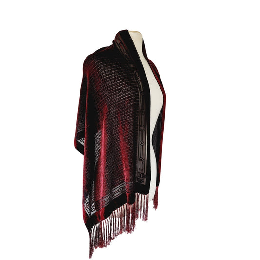 Vintage 90s Burnout Velvet Scarf Burgundy Red Velvet Fringed