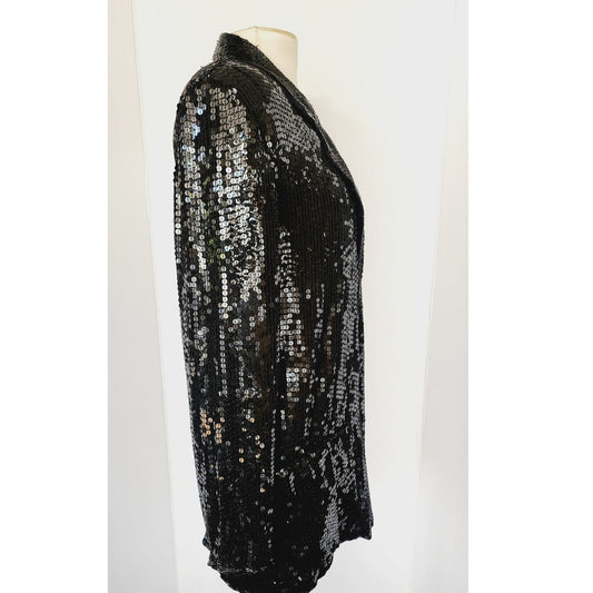 Vintage 80s Blazer Black Sequins & Beads Made in India