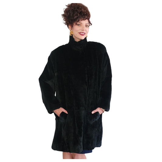 80s Black Rabbit Fur Coat Carole Little for Henri Bendel