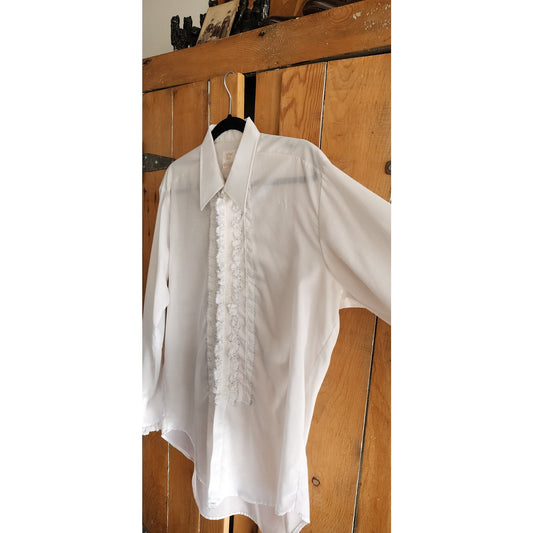 70s Mens White Shirt Ruffled Front Tuxedo Style