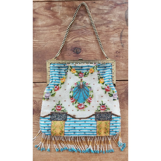 Antique Art Nouveau Bag Micro Beaded Edwardian Purse w/Fringe