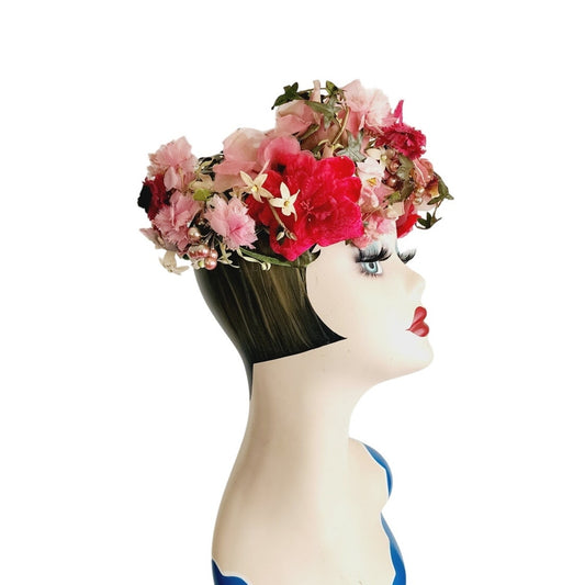 Vintage 50s Floral Hat Pink Red Hat-Nip
